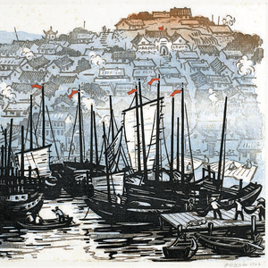 渔村 木板套色版画 杨先让 1962年