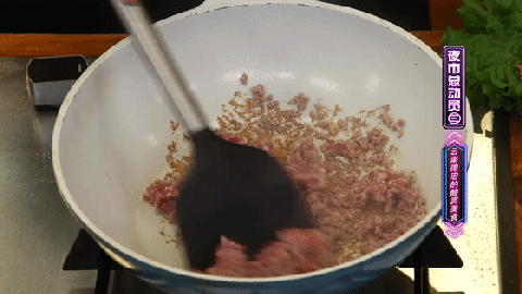 锅热后不放油,直接放入牛肉末,小火煸炒成熟。