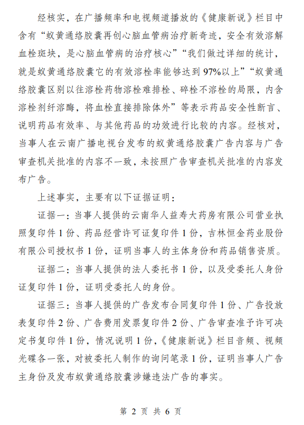 云南华人益寿堂大药房有限公司发布蚁黄通络胶囊药品违法广告案
