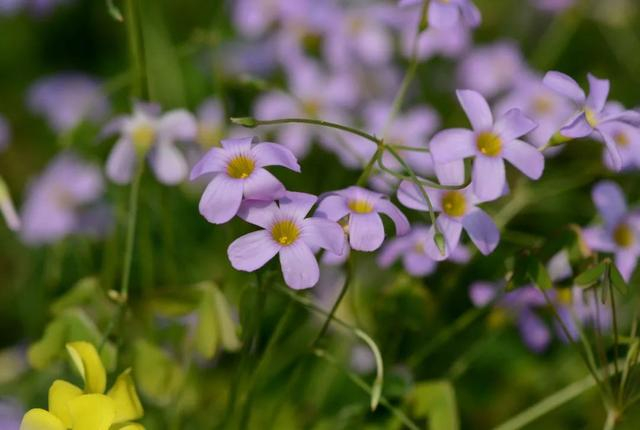 又名“明珠酢”,因其三片小叶组成一个羊蹄的形状而得名。它是一种早花型酢浆草,花期10-12月份。花梗长,花序分枝多,花色淡紫色,花朵小,但花量却非常大。