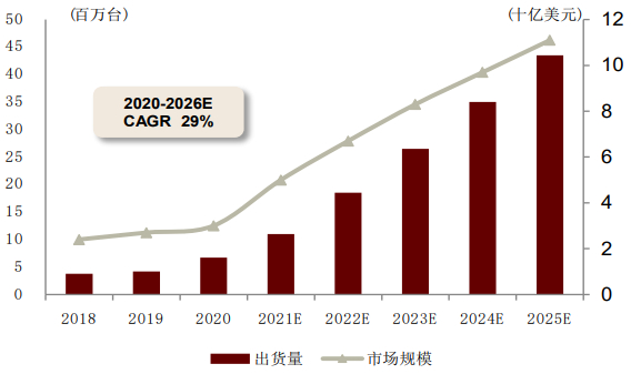 图表:TWS耳机出货量及市场规模