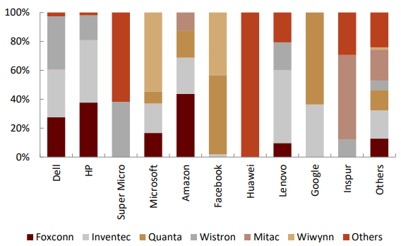 图表:4Q18服务器品牌对应代工厂份额