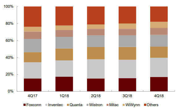图表:4Q17-4Q18服务器组装厂市场份额