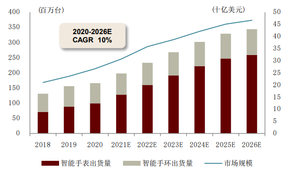 图表:智能手表/手环出货量及市场规模