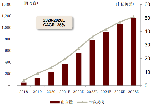 图表:AR/VR 出货量及市场规模