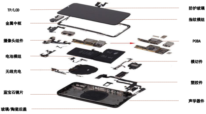 图表:智能手机零部件拆分图