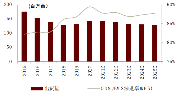 图表:电脑ODM/EMS模式出货量