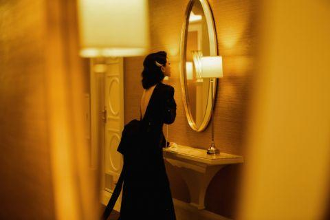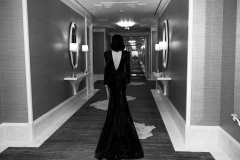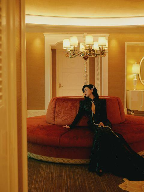 朱珠穿黑色拖尾礼服搭配复古卷发 一秒梦回“蓝心洁”