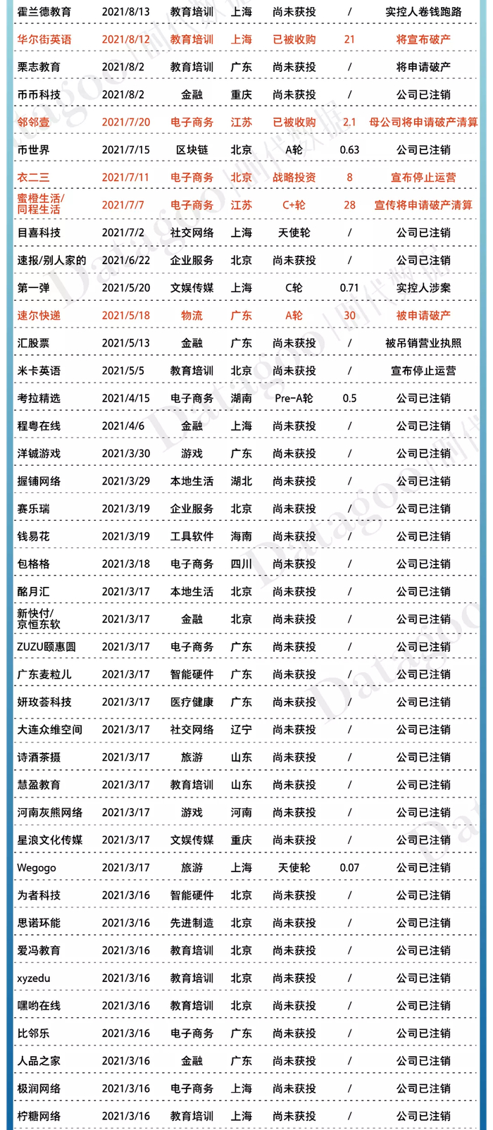 2021年创业公司倒闭名录:775家公司倒下,近八成公司是因为这个原因