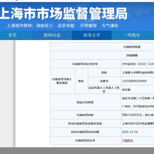 中国网财经梳理发现,今年8月,上海喜士多便利连锁有限公司因生产、销售以不合格产品冒充合格产品,被上海市普陀区市场监督管理局没收违法所得18.295042万元。