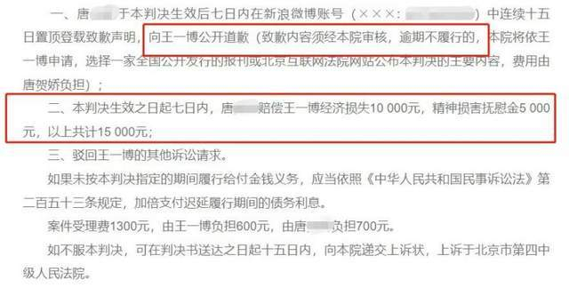 法院经审理认为,唐某、梁某发布的微博内容构成对王一博名誉权的侵犯,应当承担停止侵权、消除影响、恢复名誉、赔偿损失等法律责任。最终裁判结果为:唐某、梁某在微博账号连续15日置顶登载致歉声明,两人分别赔偿王一博15000元等。