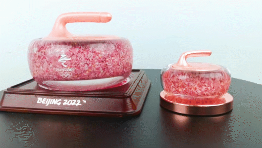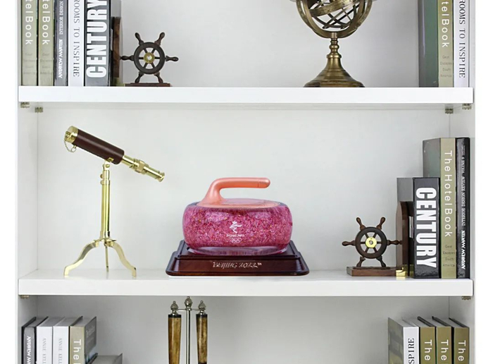 在复刻冰壶实物手柄的同时,方便观赏者手拿欣赏,设计科学讲究。