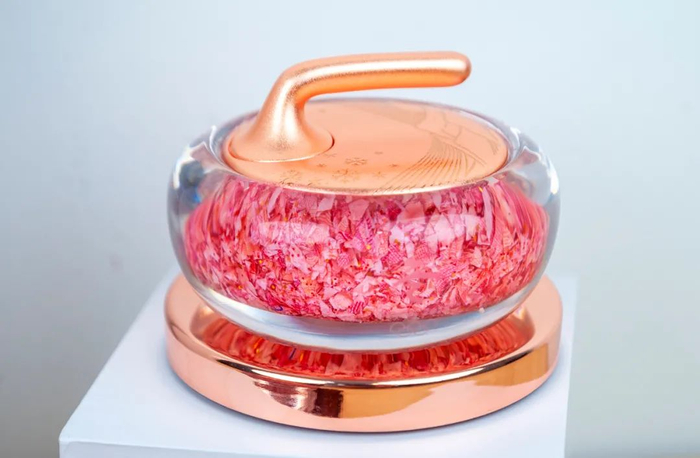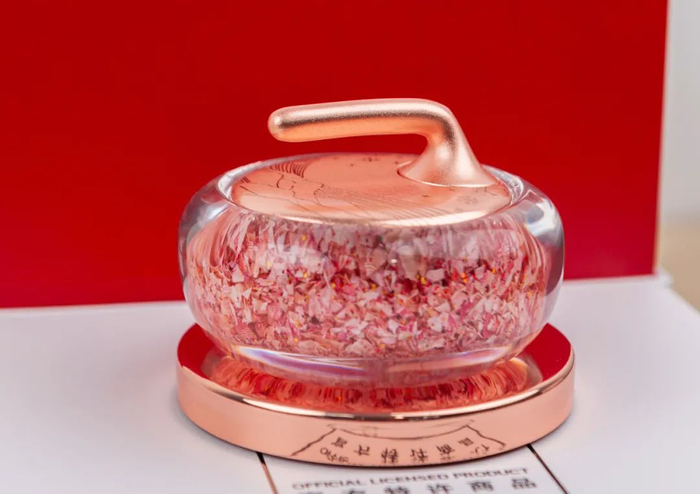通过玫瑰金色底座将主体冰壶烘托得更加具有欣赏性。