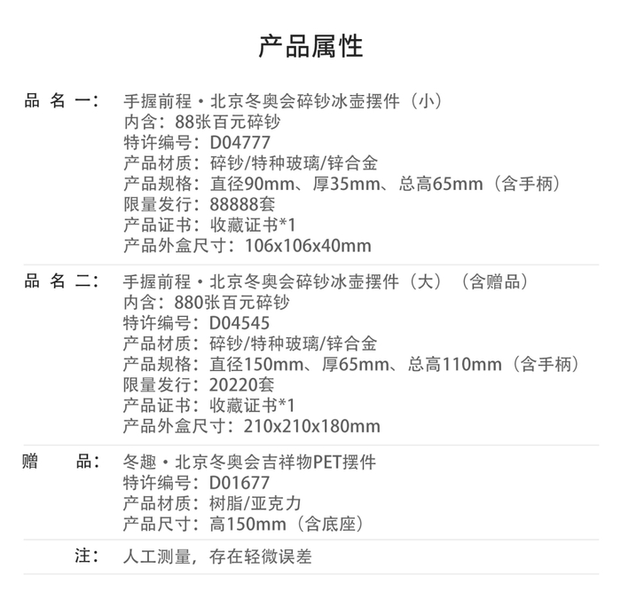 特别提醒的是,大冰壶会徽为描白款,小冰壶会徽为透明款。