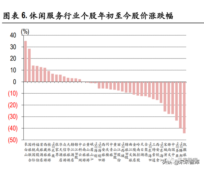 但不可否认的是由于业务停摆造成的费用率提升,旅行社在维持基本运营的前提下不得不面 对人员流失。由于现阶段国家文旅部仍没有放开出入境旅游的通知与政策出台,作为旅行社毛利较 高的出境游业务恢复仍然存疑,预计旅行社业绩的恢复在未来一段时间内仍存在压力。对于旅行社 行业而言,能否利用出境游停滞、高端旅游回流的契机,开发适应疫下市场的新业务和产品,以此 转型升级挺过疫情带来的行业寒冬将至关重要,只有经受住特殊情况洗礼的企业,未来才能有发展 的可能。
