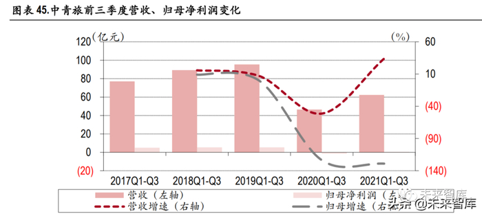 公司公告,第三季度中 青博联在整合营销行业继续保持领先地位,先后深度参与第 44 届世界遗产大会、2021 世界 5G 大会、 2021 中国服务贸易交易会等大型会展项目服务。公司的旅行社业务深挖热门旅游路线的文化内涵, 结合文旅创新提升产品吸引力,顺应疫后游客需求变化,打造专注短途休闲旅游的“微旅行”,并 积极探索线上线下宣传营销渠道,建立品牌优势。公司策略性投资业务稳步发展,创格科技第三季 度营收同比增长 7.86%;中青旅大厦持续为公司带来稳定租金现金流。(报告来源:未来智库)