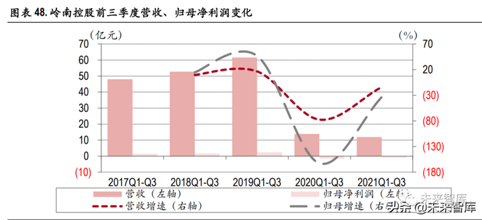 聚焦疫后新需求,提升服务品质。为应对疫情对公司业务的冲击,岭南控股采取多样措施,针对商 旅出行业务,公司专研疫后游客需求,精准旅游产品供给,提升服务品质。21 年第三季度结合秋季 出游,广之旅推出国内游赏秋系列产品;省内游产品重视文旅融合,深耕本地生活,策划“花样广 州-一城千面”等活动;并成为珠海航展广东地区官方指定合作商。在住宿业务方面,积极顺应休闲 度假型旅游需求增长态势,酒店经营保持持续恢复。全资子公司广州岭南国际酒店在 21 年前三季度 实现营收同比上涨超 4 成,较 19 年同期水平增长近 3 成。