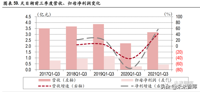 在暑期疫情好转后,公司 9 月对南京都市圈居民推出山水园、南山 竹海景区免门票活动,积极深挖南京周边地区游客消费潜力。十一期间举办多元化主题系列活动, 例如位于山水园景区的“湖畔百乐园”,景区夜游活动“一湖时光”,南山竹海景区的“二次元狂 欢嘉年华”等。21 年国庆期间天目湖旅游度假区共接待游客 46.97 万人次,实现旅游收入 7,511.87 万 元,同比 19 年同期水平分别上涨 1.49%、5.18%。同时公司参加飞猪双十一大促,御水温泉度假酒店 6 小时预订突破 2,300 套。公司顺应目前旅游需求转变,从亲子研学、银发疗休养等热点出发,积极 挖掘自身资源结合产品设计,逐步完善一站式旅游目的地打造为未来的外延发展夯实基础。
