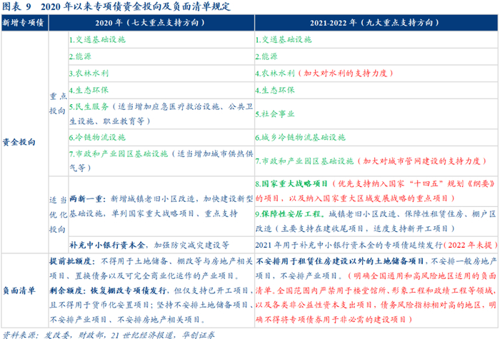具体内容详见华创证券研究所12月28日发布的报告《2022年专项债资金重点支持什么项目?——“债问”2022系列之五》