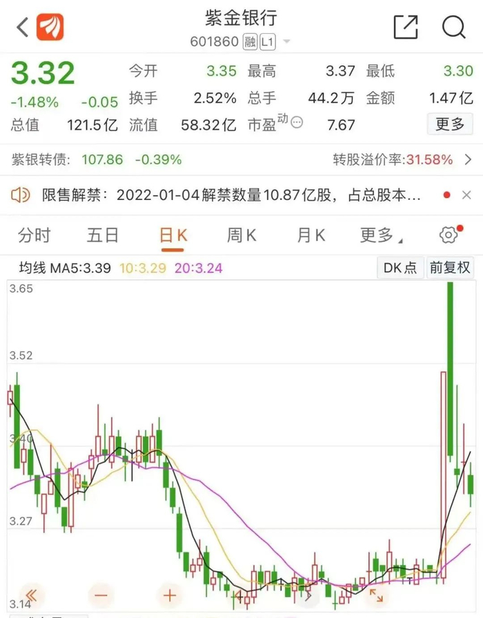 17.2亿股!紫金银行迎来巨量解禁,占总股本近50%…高管增持未能逆转股价颓势