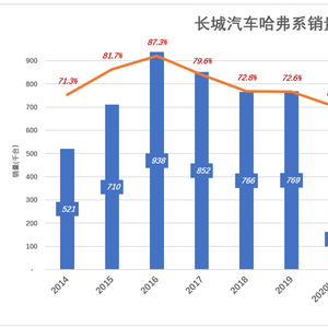 哈弗已连续十年蝉联“中国SUV冠军”,累积销量超过600万。早在2016年,哈弗销量就达到峰值93.8万台。随后4年,哈弗销量先后降至80万台、70万台……离“大顶越来越远”。