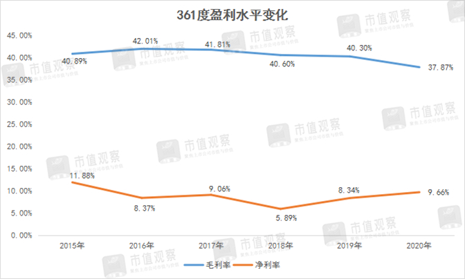 经营层面看,公司主打跑步类产品,并主攻大众市场,但由于研发与营销方面的投入不足,公司过去5年营收年复合增长率仅为2.83%(同期李宁为15.32%),同时毛利率、净利率还呈下滑趋势。