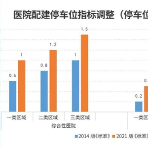 《标准》进一步优化了标准,适度提高综合性医院和社区服务中心配建车位指标;要求优化医院内部交通设计,二级及以上综合医院和专科医院,应在基地内部设置车辆临时上下客区域;医院建筑在设置机动车出入口时,宜为外来就医车辆预留停车预约专用或优先进出通道;宜在主出入口一侧沿道路红线增加建筑后退距离,增设一根车行道;补充医院车位预约要求,医院建筑配建停车库(场)应为外来就医车辆设置预约车辆专用停车区,覆盖车位数比例不宜小于新建总车位数的50%。