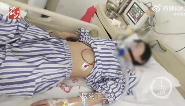 ▲萌萌躺在病床上情况危重。图片来源/视频截图