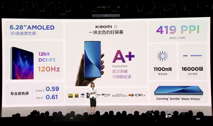 屏幕方面,小米12搭载了一块6.28英寸、2400x1080分辨率屏幕,采用微曲面设计,支持12bit色深显示,1100nit峰值亮度,支持16000级自动亮度调整。