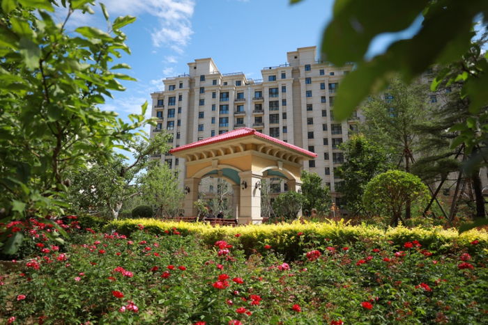 燕达养护中心整体绿地率超过60%,种植大量景观树和花卉植物,实现了园区四季常绿、四季有花、三季有果的生态景观效果。在燕达医院与养护中心之间还修建了带状水系公园,风景亮丽宜人。整个园区就像一座大公园,足不出院,就可以遛弯散步,欣赏身边的亭台楼阁和艺术雕塑。