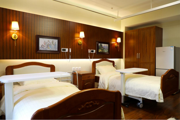 需要照护的老人,居住在宾馆式养护区,环境豪华舒适,并设有壁画式氧气装置,每层均设有护士站,医护人员24小时值班,为长者提供优质的护理服务。