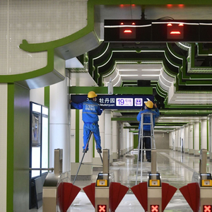 为提升服务品质,北京轨道运营公司将19号线车站设施全新升级,原本车站内的纸质标识,被超大的“LCD”屏取代了,站内综合信息导视延续使用大兴机场线同款LCD屏。同时,车站出入口通道安装“放大版”编号标识,方便乘客快速找寻出入口。