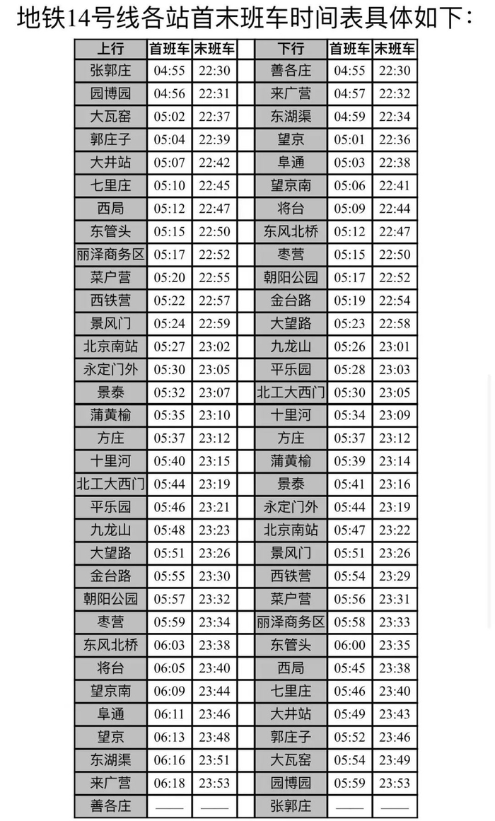 地铁14号线即将全线贯通!各站首末班车时间公布!