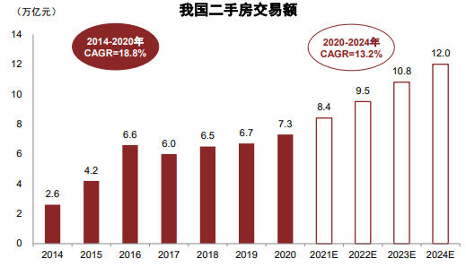 图表3:未来我国二手房交易额仍有望维持双位数增长