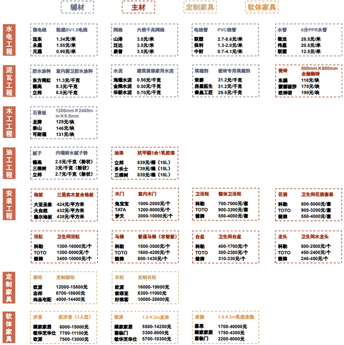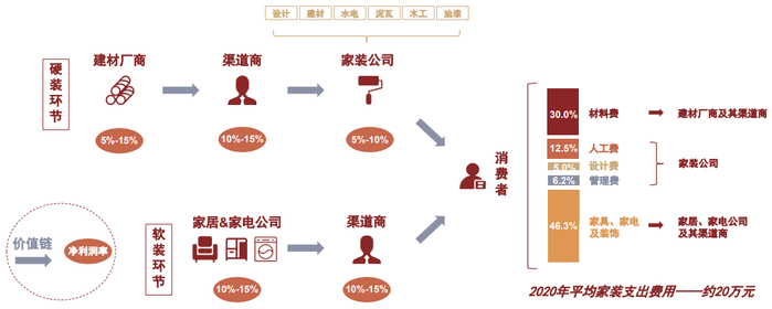 注:家装支出费用及其拆分数据分别来自于艾瑞咨询和亿欧智库2020年的市场调研数据