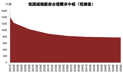 图表2:我国城镇居民新房合理需求中枢已步入下行通道