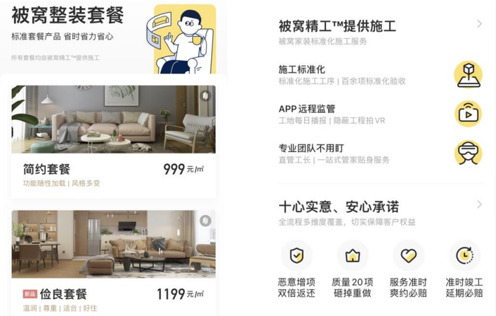 图表25:被窝为消费者提供两款整装套餐,硬装施工由被窝精工负责