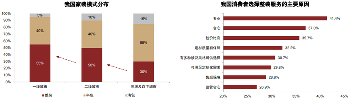 图表7:一二线城市消费者的时间成本更高,对整装模式更加偏爱