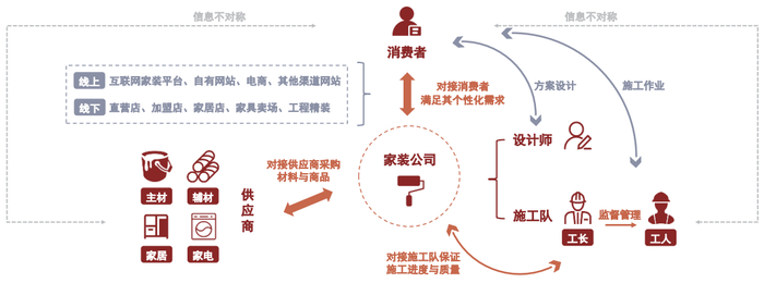 图表15:以家装公司为核心的传统家装业务模式(以整装模式为例)