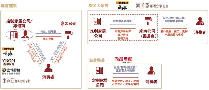 图表18:定制家居公司通过零售整装、整装大家居和自营整装三类模式切入家装赛道