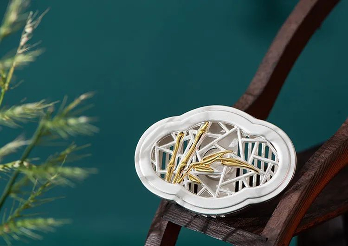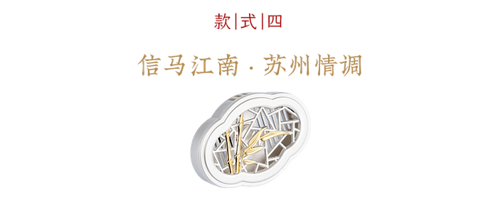 这一款便以苏州博物馆内的海棠花窗为灵感,以银窗金竹设计,彰显苏州特有的精致典雅。