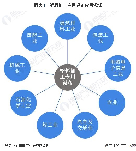 塑料加工专用设备制造业,是指塑料加工工业所使用的各类专用机械和装置的制造工业。作为重要的技术装备,塑料加工机械广泛应用于建筑材料工业、包装工业、电器电子信息工业、农业、汽车及交通业、轻工业、石油化学工业、机械工业、国防工业等国民经济各个部门及人们生活的各个领域,在国民经济中日益显示出极为重要的作用。