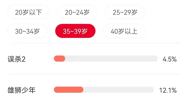 猫眼专业版提供的用户画像对比,40岁以上的比例同上图相似