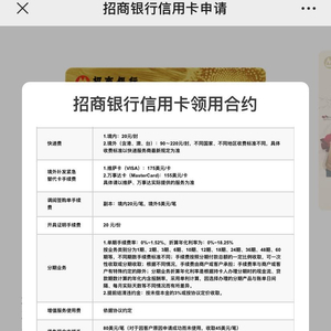 据《财经天下》周刊发现,在申领招商银行信用卡时,下方会出现一行小提示,涉及《招商银行信用卡章程》和《招商银行信用卡(个人卡)领用合约》,而《合约》中的收费标准下包含了增值服务使用费,但其具体细则要依据协议约定。