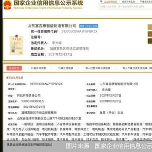 北京商报记者从国家企业信用信息公示系统官网了解到,富吉康正式成立,注册资本1亿元,法定代表人为李光曜,该公司注册地址位于山东省淄博市高新区宝山路777号研发楼5楼501室。