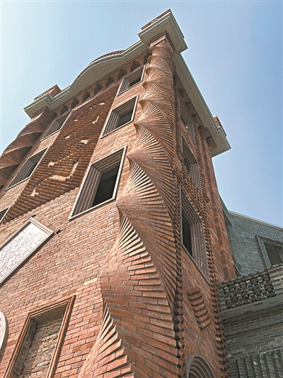 而相比于继承,创新是侨小馆的设计信念,侨小馆在继承传统的基础上,进行创新,从西班牙埃尔保拉尔查尔特勒修道院的旋转柱子上汲取灵感,在建筑东南侧塔楼外立面修建了旋转形柱子。该柱高14米多,在砌筑红砖前,先以钢筯打造基础框架,再将每块砖沿框架排布,再进行矫正、固定、切割、上铺料等工序,一气呵成。