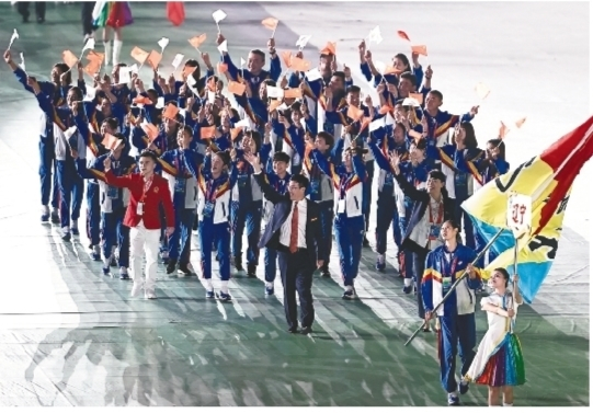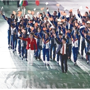 十四运会开幕式上,辽宁体育代表团入场情景。