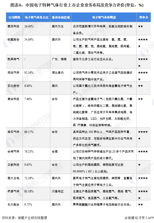 本文核心数据:电子特气产业竞争梯队、电子特气产业市场份额、电子特气产业市场集中度、电子特气产业上市公司业务业绩对比