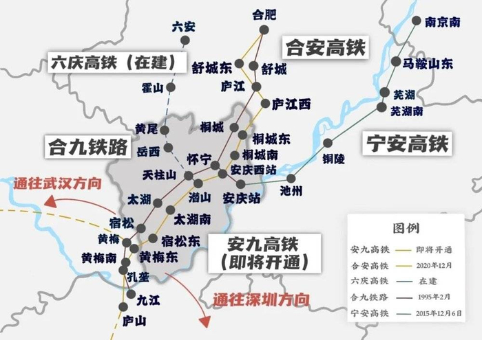 时至今日,即使相继开通了宁安、合安高铁,安庆仍是周边密集线路闭合环中间的铁路“真空地带”。