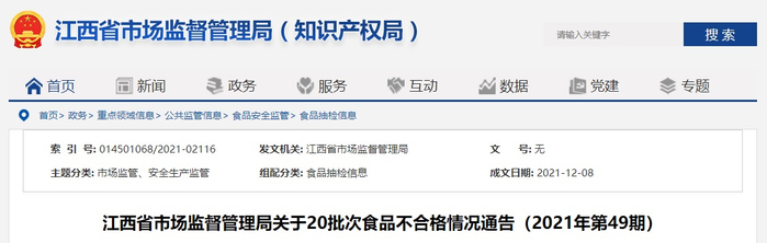 对抽检中发现的不合格食品,江西省市场监督管理局已通知相关市场监管部门依法处置,并要求属地市场监管部门责令食品生产经营环节相关单位立即采取查清产品流向、停止销售、下架、召回等措施控制风险,并将查实的进货渠道、产地等信息通报相关管理部门。